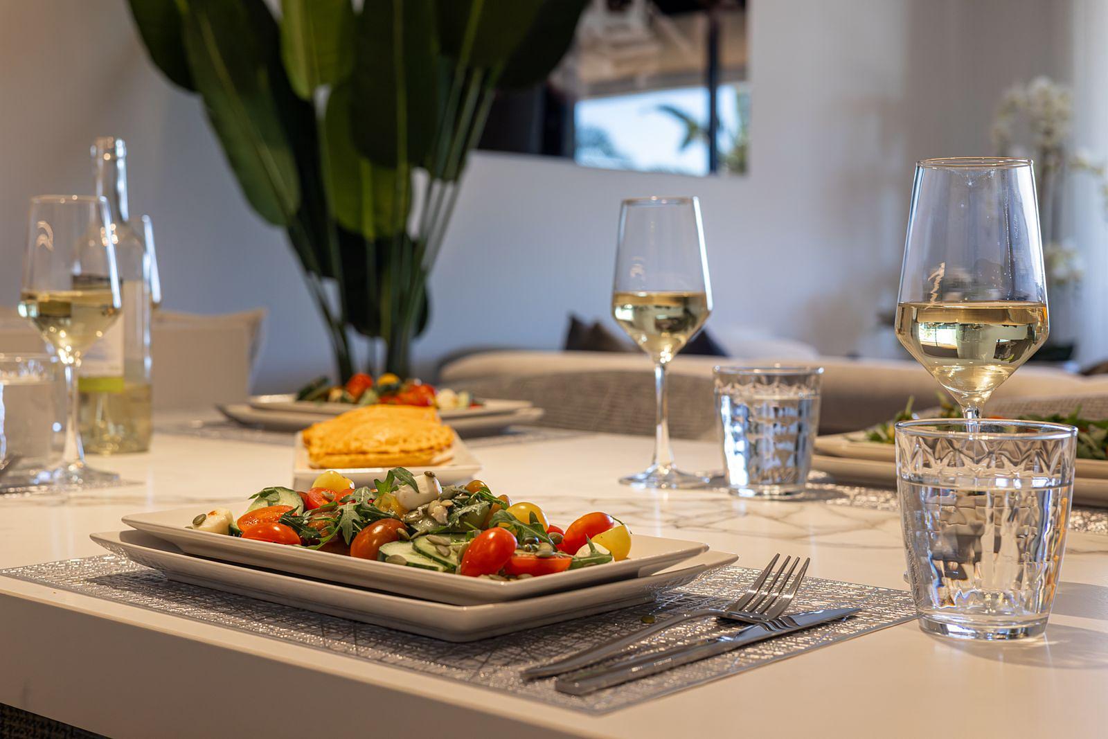 A dining area for up to 6 guests creates the perfect setting for family meals or relaxed evenings with friends.