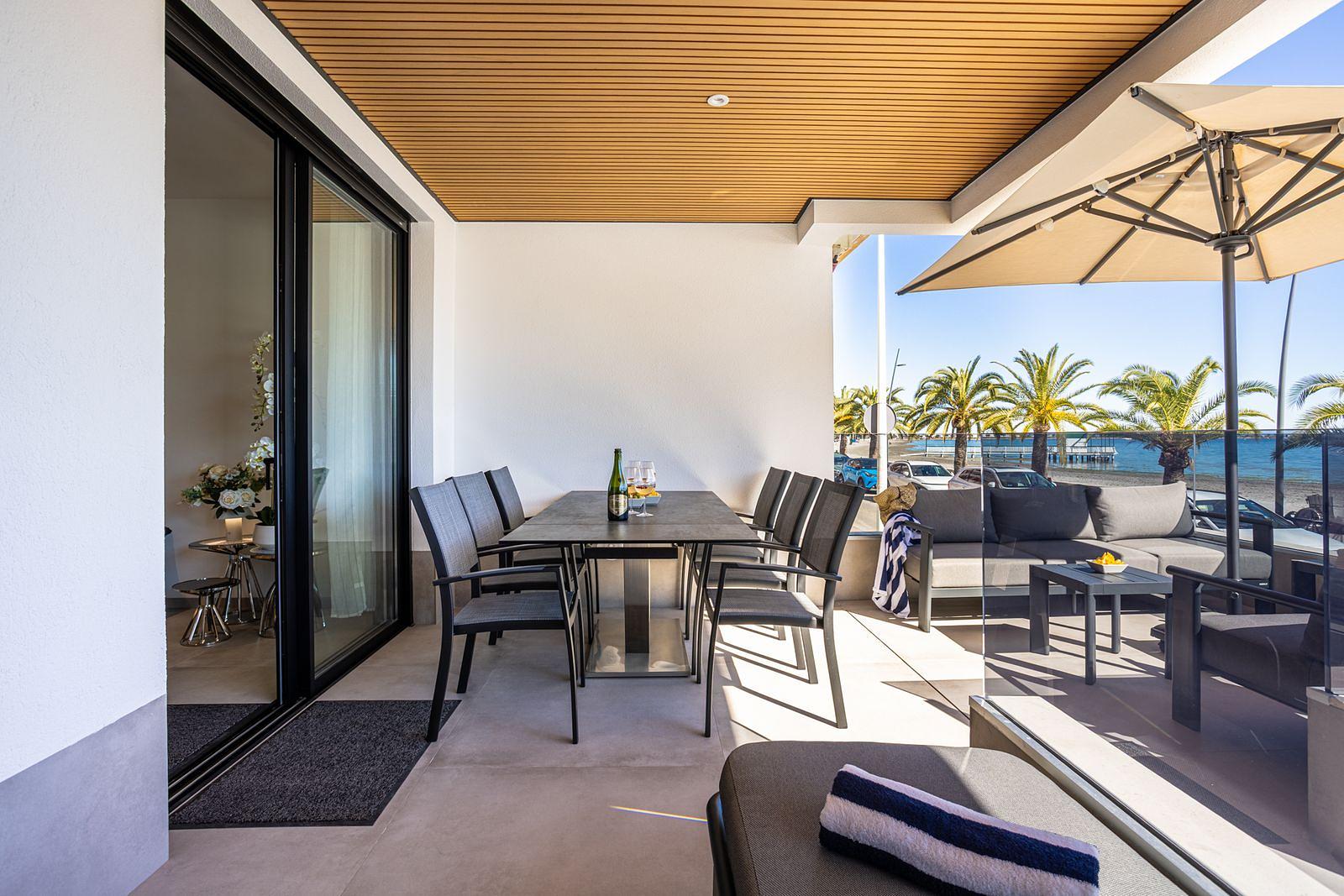 ☀️🌊🍹Private sea view terrace with dinning area, lounge set and sun lunger